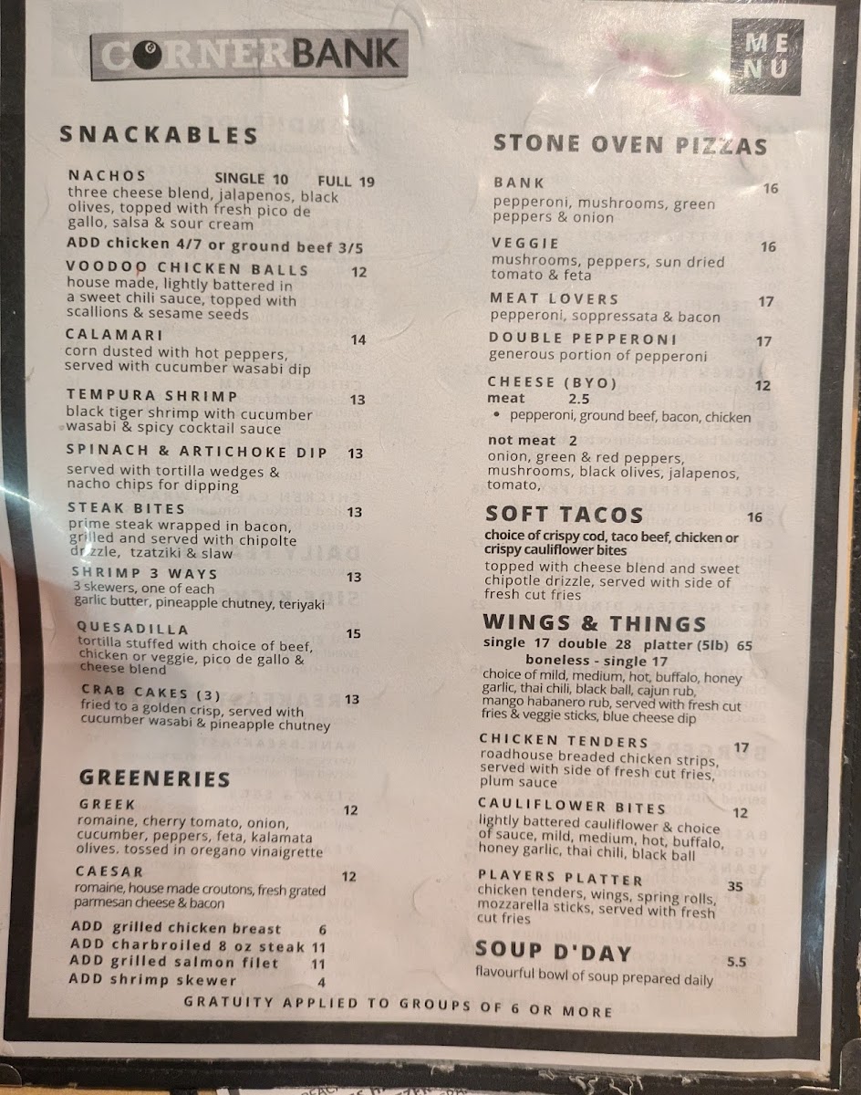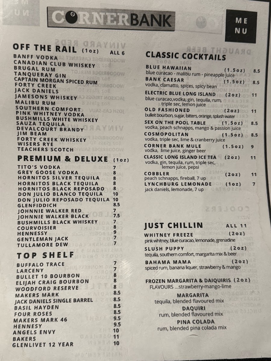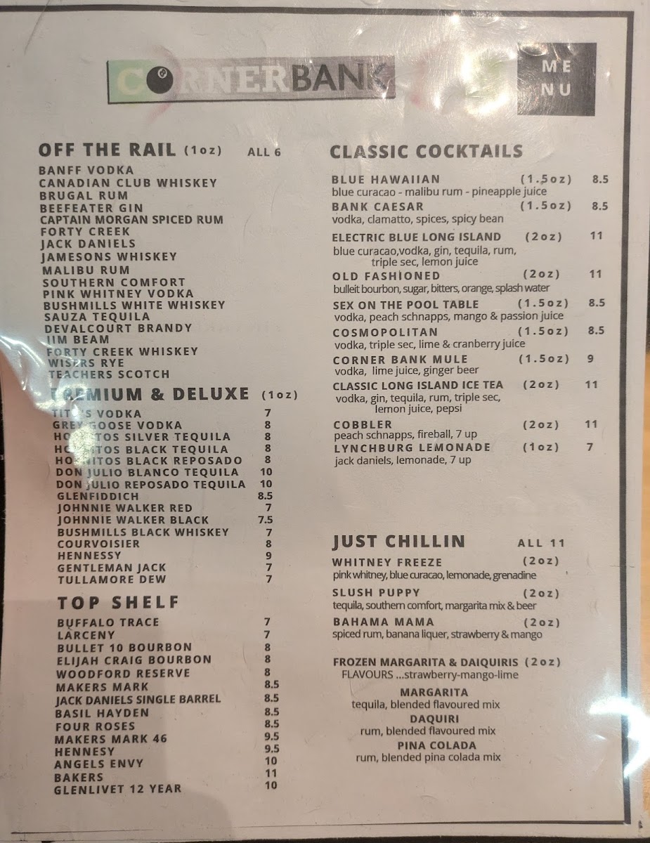 The Corner Bank Sports Bar & Grill offers a menu that complements its lively yet relaxed atmosphere, focusing on casual bites and comforting drinks ideal for any game day or casual night out. Whether you're settling in for a pool match or catching the big game on one of the many TVs, the menu provides a variety of satisfying options that suit different cravings and occasions.
